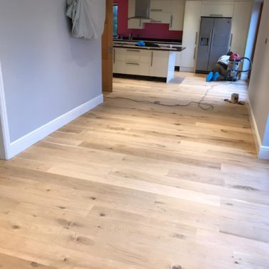After sanding, we applied two coats of high-quality Osmo Oil to finish the floor. The first coat penetrated the wood, enhancing its natural tones and providing a durable layer of protection. The second coat added a smooth, satin finish, ensuring the floor is both visually appealing and resistant to daily wear. Osmo Oil is an excellent choice for engineered oak strip flooring as it protects the surface while allowing the wood to retain its natural feel and character.