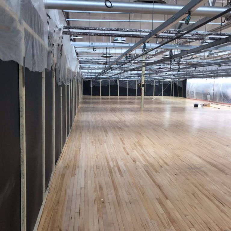 Easingwold academy 450 sqm of engineered oak strip sanded and completed with 4 coates of Junckers HP, also entire stage…