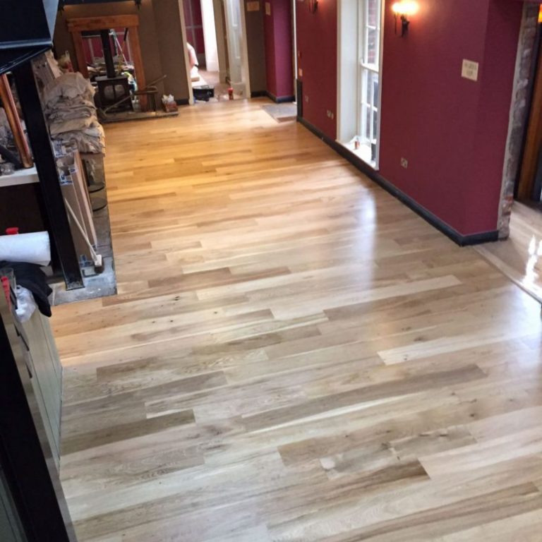 Strip oak previously in very bad condition. We have sanded floor to fine grit and 3 coats of matt seal…