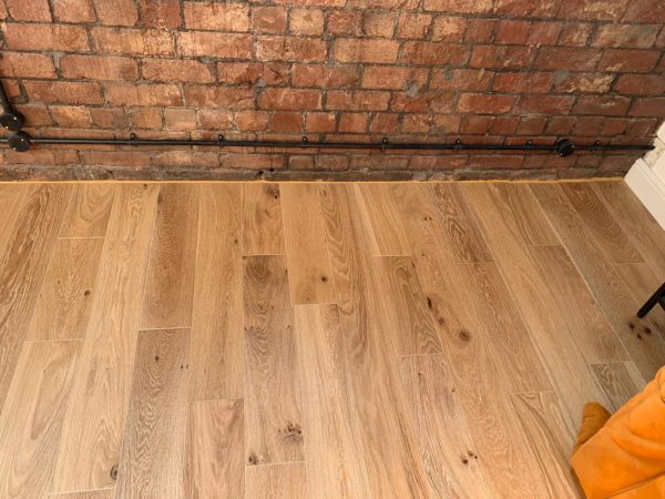 Engineered oak floor pre-finished with lime wash. We have installed the floor on silent mat to reduce noise due to customer living in a apartment.