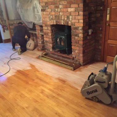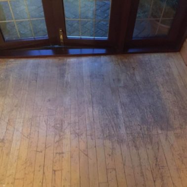 When we have been to do the survey, we have noticed the floor was particularly damaged in the door area. We have recommended a full re-sand to remove scratches. Also, because the customer had dogs we have suggested to use a high traffic lacquer to protect the floor as much as possible. The customer agreed with our recommendation, so the work has gone ahead.