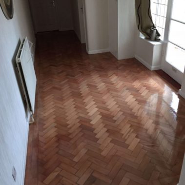 On this Cherry Parquet Floor restoration project the floor has been sanded down to a fine grit and 3 coats of seal have been applied.