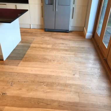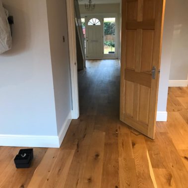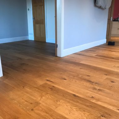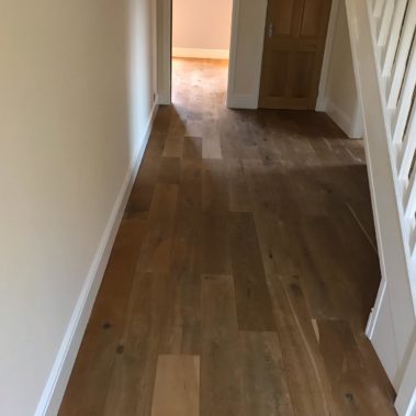 After sanding, we applied two coats of high-quality Osmo Oil to finish the floor. The first coat penetrated the wood, enhancing its natural tones and providing a durable layer of protection. The second coat added a smooth, satin finish, ensuring the floor is both visually appealing and resistant to daily wear. Osmo Oil is an excellent choice for engineered oak strip flooring as it protects the surface while allowing the wood to retain its natural feel and character.
