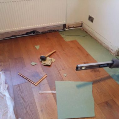 Because of a radiator leak the floor needed to come up, the sub floor was prepared and a new floor has been laid.