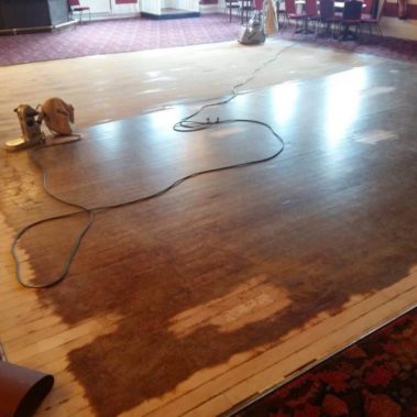 This maple dance floor restoration project, The Black Horse Pub in Skipton has been a bit different from the other projects. Customer wanted the floor stained in a mahogany colour, with maple wood being a hard wood is hard to achieve a even colour when apply the stain so we had to find best solution to achieve this.