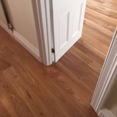 Engineered oak strip sanded, previously very worn. We have completed the floor for our customer with 2 coates of Osmo Oil.