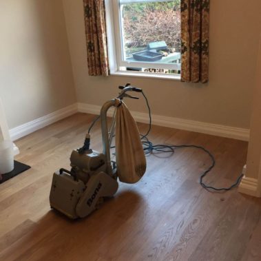 The new oak floor has been sanded down and 2 coats of osmo clear oil has been applied.