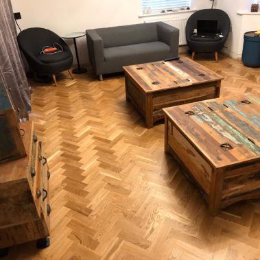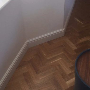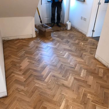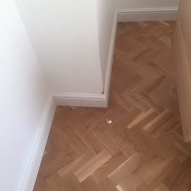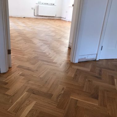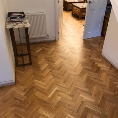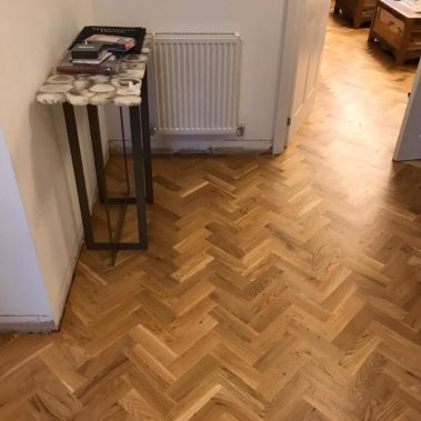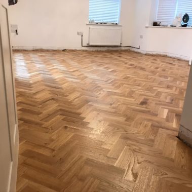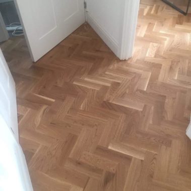 Parquet Floor Installed in Barlby. Floor was installed in herringbone pattern wall to wall on a concrete base. Once installed floor was sanded, gap filled and completed with Bona Craft Oil natural and 2 coates of Bona HD lacquer.
