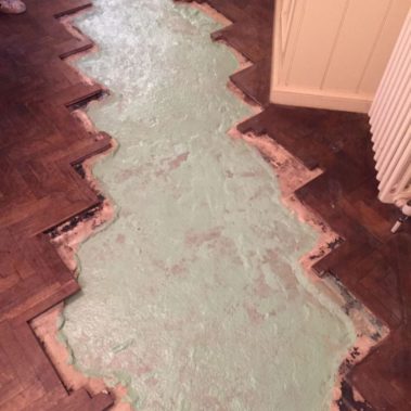 The floor have damp problems and there were blocks that have become loose. We have removed all loose blocks, cleaned the base, removed all loose screading, applied DPM and a new screed base. All blocks have been cleaned and refitted. The entire floor has been sanded and 3 coats of seal have been applied.
