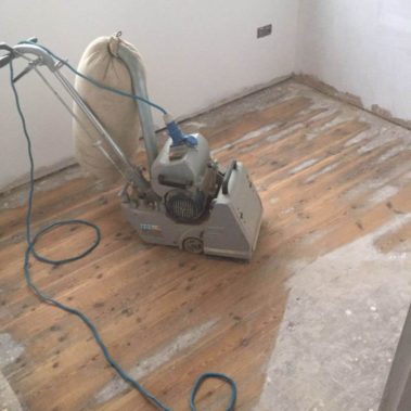 Engineered oak strip sanded, previously very worn. We have completed the floor for our customer with 2 coates of Osmo Oil.