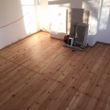 Pine boards floor restored for our customer by sanding it down and complated with 3 coates of clear Junckers Strong lacquer.