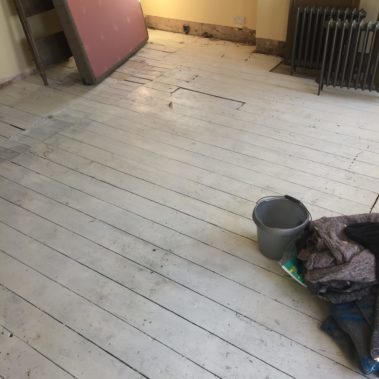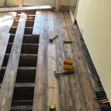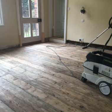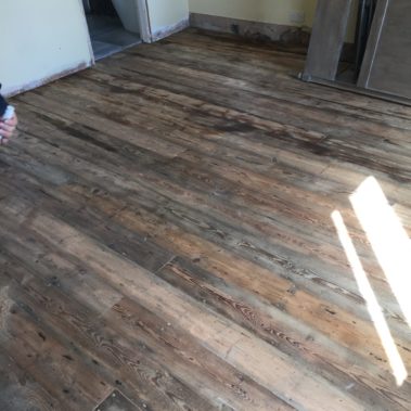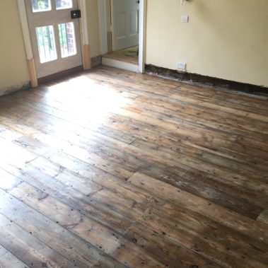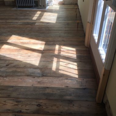 On this project we had to lift existing boards and replaced them with reclaimed pine boards from a local reclaimed yard. After installation the floor was finished with 2 coats of clear oil