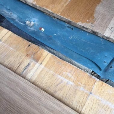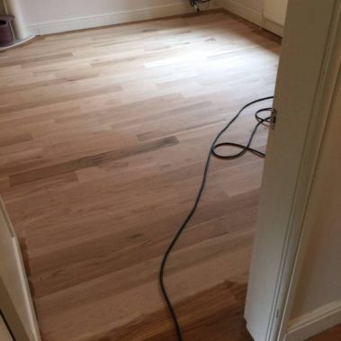 Customer contacted us regarding his solid oak sand seal floor project in Pontefract. Because the customer removed one of the internal walls the floor was left with a gap that he covered with plywood. For this repair we  removed the plywood and cleaned and flattened the gap. To cover the gap we made a new bespoke piece of oak that we put in place to match the existing floor, this was fixed in place with wood glue.