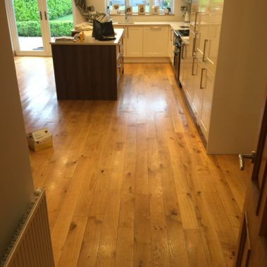 Reclaimed Oak restoration project done when for our customer. Customer contacted us after he had a go at restoring the floor himself to save money but the floor was left very patchy. On this project we had to do a full resand and we have completed the floor with 3 coates of clear Junckers Strong lacquer