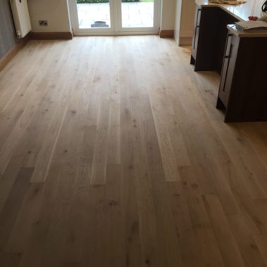 Engineered oak floor pre-finished with lime wash. We have installed the floor on silent mat to reduce noise due to customer living in a apartment.