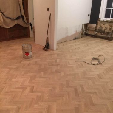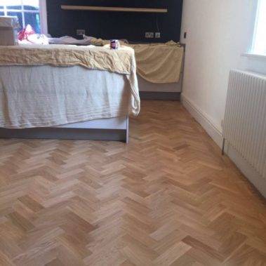 We have installed solid oak parquet blocks. After we laid the floor, we have done gap filling and sanded the floor to fine grit and we applied lacquer.