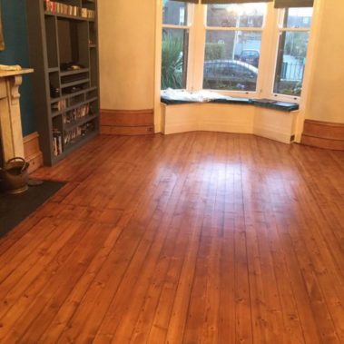 We have sanded the floor to a very fine grit, new light oak stain and 3 coats of seal have been applied.