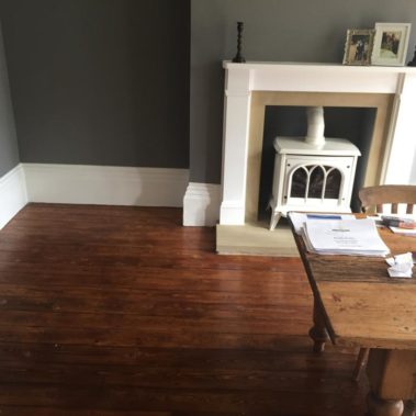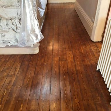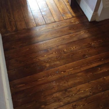 Pine boards floor restored for our customer by sanding it down and complated with 3 coates of clear Junckers Strong lacquer.