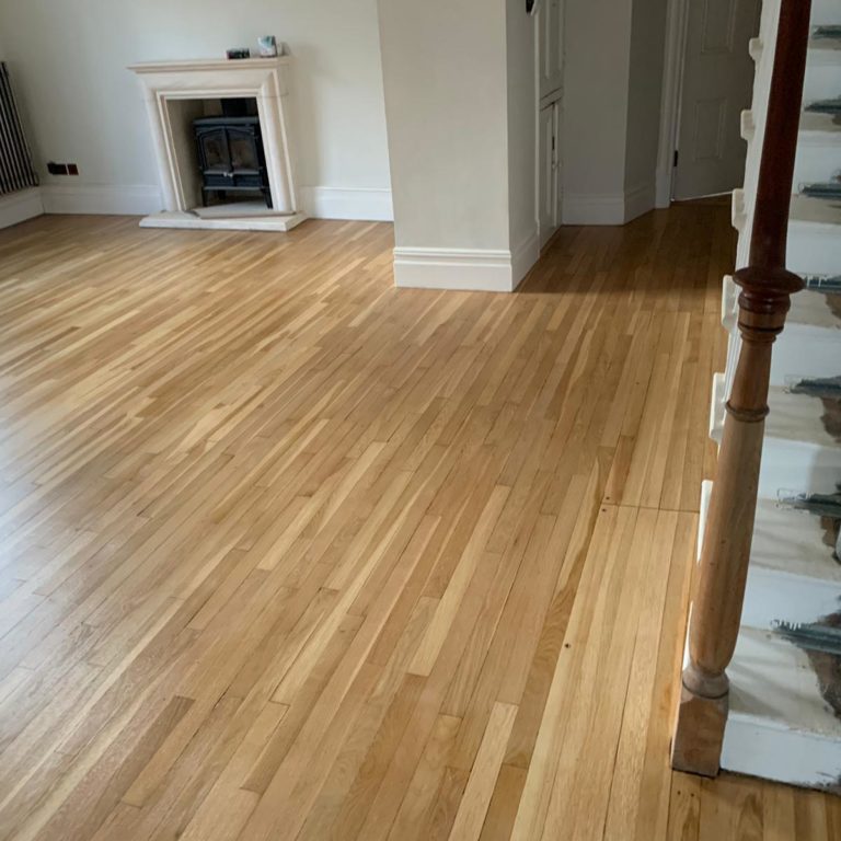 Solid Oak strip installed in one of the customers rooms. Once installed the entire downstairs was sanded and 3 coates…